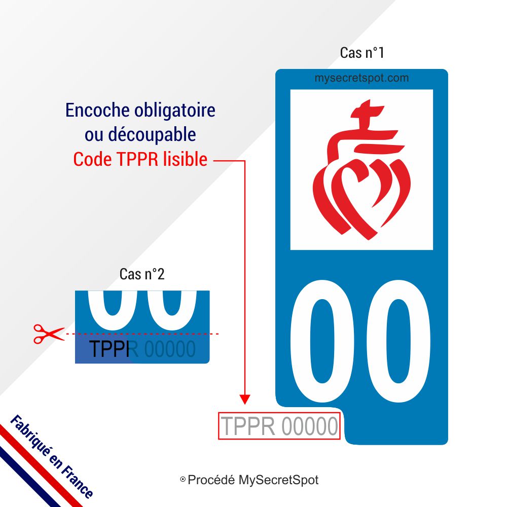 Attention : En ajoutant votre autocollant de département sur une plaque minéralogique, ce dernier ne doit pas recouvrir le code TTPR (numéro qui correspond à l’agrément donné par l’UTAC) voir schéma. Ce code doit obligatoirement être visible par les forces de l’ordre en cas de contrôle afin d’être en mesure de déterminer l’homologation des plaques d’immatriculation. Depuis décembre 2020 la Cour de cassation a confirmé en qu'il est interdit d’apposer des autocollants sur les plaques d’immatriculation risquant de recouvrir des éléments obligatoires tel que le code TPPR. Coller un sticker sur une plaque d’immatriculation est donc une infraction au Code de la Route. Celle-ci est passible d’une amende de 4ème catégorie pouvant atteindre 375 € et jusqu'à 750 € en cas de récidives. La responsabilité en cas d’infraction incombe au propriétaire du véhicule.